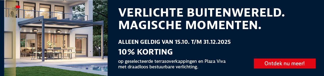 Eén terrasoverkapping, vele kleuren – in welke stemming bent u vandaag? Heeft u zin in een romantische sfeer in rood of toch liever in een rustige ambiance in een aangename blauwgroene tint? Een extra ledverlichting, bijvoorbeeld met ledspots kan overal worden gemonteerd, terwijl deze tegen het weer wordt beschermd. Afhankelijk van het model heeft u de vrije keuze uit een groot aantal kleuren en kunt u uw geheel eigen moodboard samenstellen.